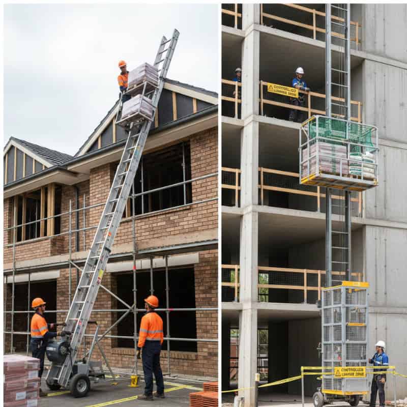 Inner-west terraces, Eastern Suburbs blocks, and many renovation sites have limited side access and minimal laydown areas. Ladder lifts often fit better where a full hoist footprint and exclusion area would interfere with the job flow.