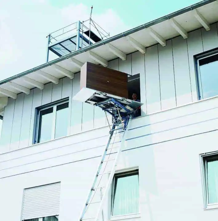 Ladder Lifts are helpful for every work – indoor and outdoor. The ladder systems can transport all kinds of materials to the upper levels of a building. Inclined lifts offer the perfect assistance for moving furniture, interior constructions, façade renovations, or the restructuring of flat roofs. Due to the movable end, the transportation goods can quickly be unloaded from the platform. This prevents back pain and facilitates the work.